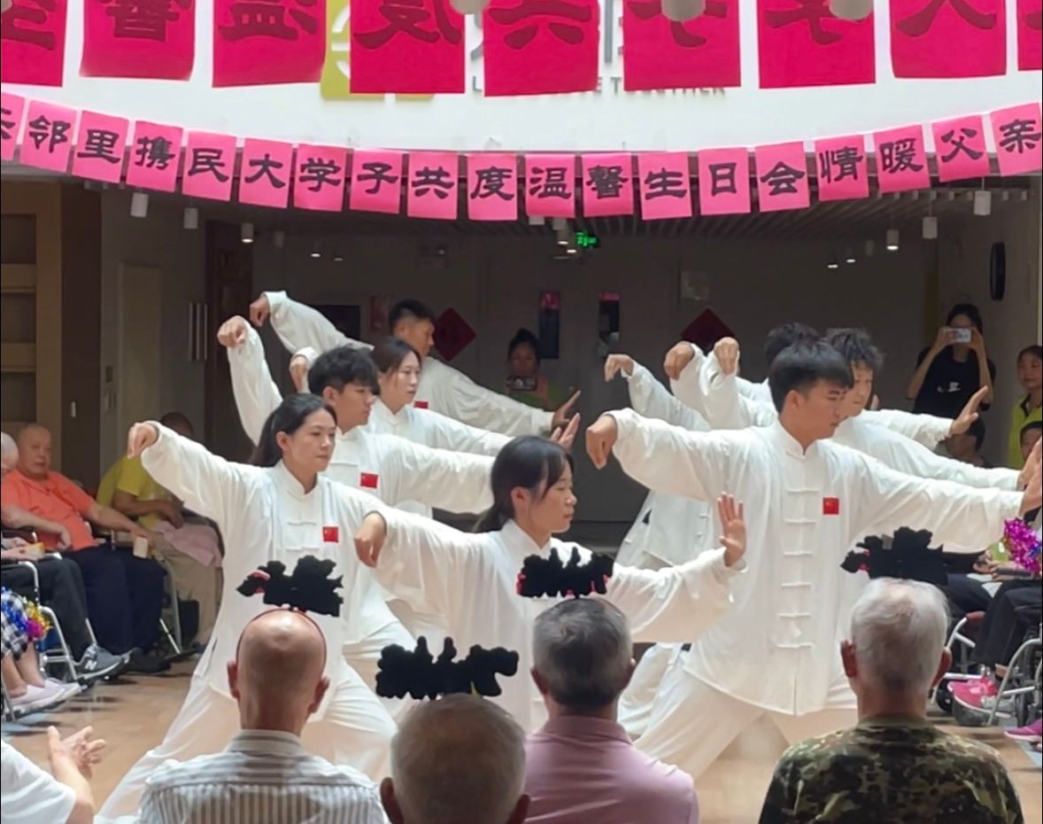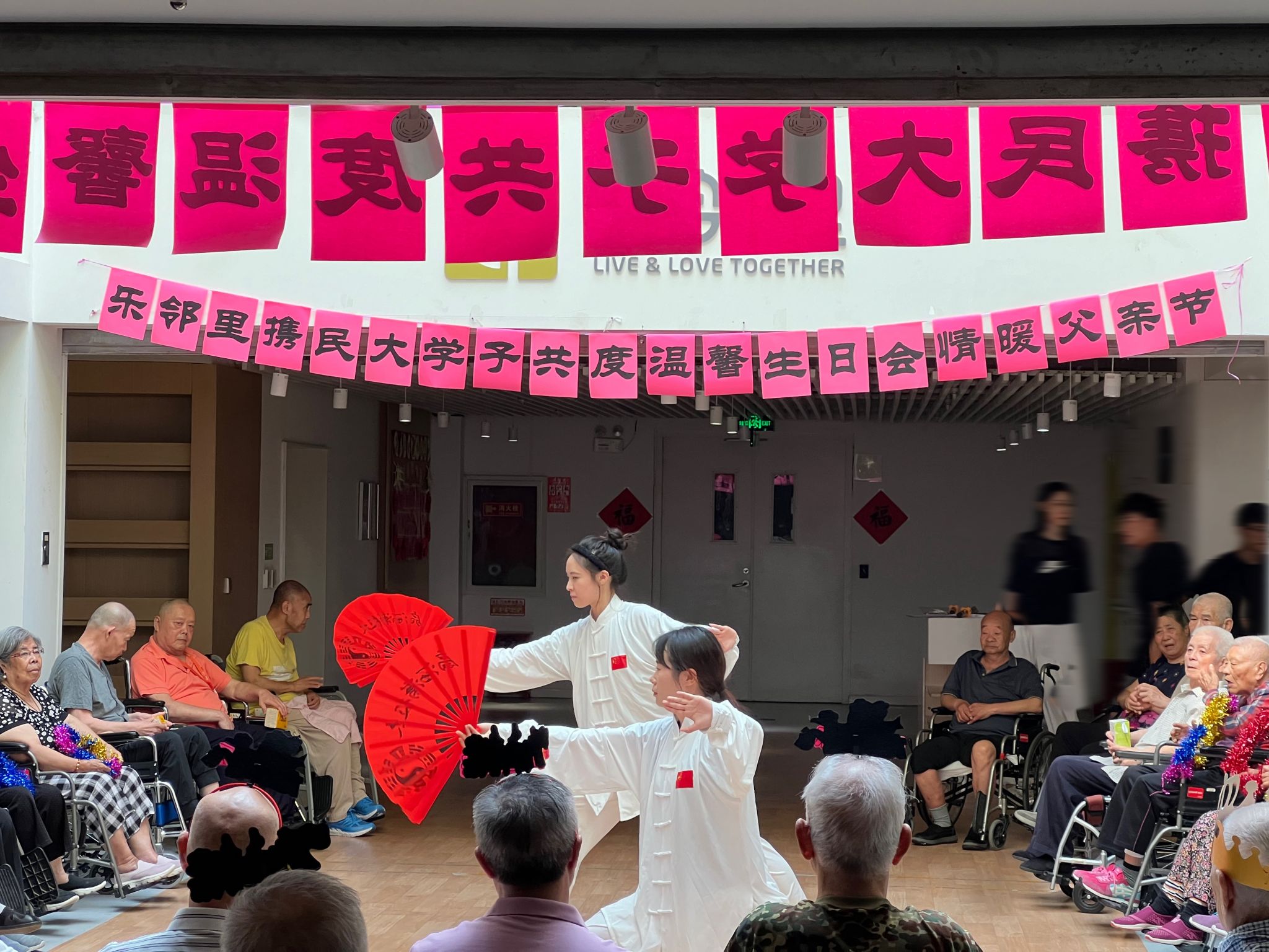 随后,员工党员与养老院工作人员一起协助行动不便的老人集中到大厅开展父亲节庆祝活动。大家表演了精心准备的节目:诗朗诵《父亲的诗歌》,合唱“筷子兄弟”的《父亲》,《武术串烧》(24式太极拳、太极扇、太极剑)等,精彩的表演无不获得老人们热烈的掌声。大家还与老人们进行红歌联唱,将整个活动推向高潮。随后是庆生环节,在生日快乐歌的旋律之中,支部党员与长者们共同庆生,现场洋溢着满满感动和暖暖的陪伴。