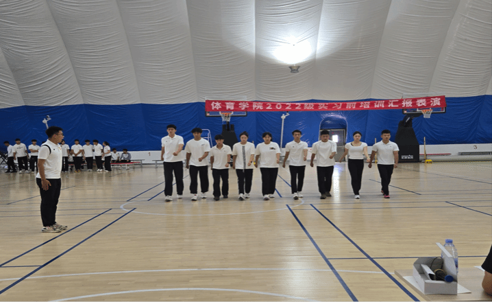 汇报展演前,张凤民副经理在讲话中指出,此次实习前培训是理论与实践融合的关键环节,旨在通过展演检验技能、锤炼意志,为同学未来开展体育教学工作奠定扎实基础。他强调,队列队形、太极拳等传统项目不仅是技能考核,更是师范生职业素养的集中体现,全体同学必须高度重视,确保以最佳的精神状态和技能水平参与到未来的实习工作中去。