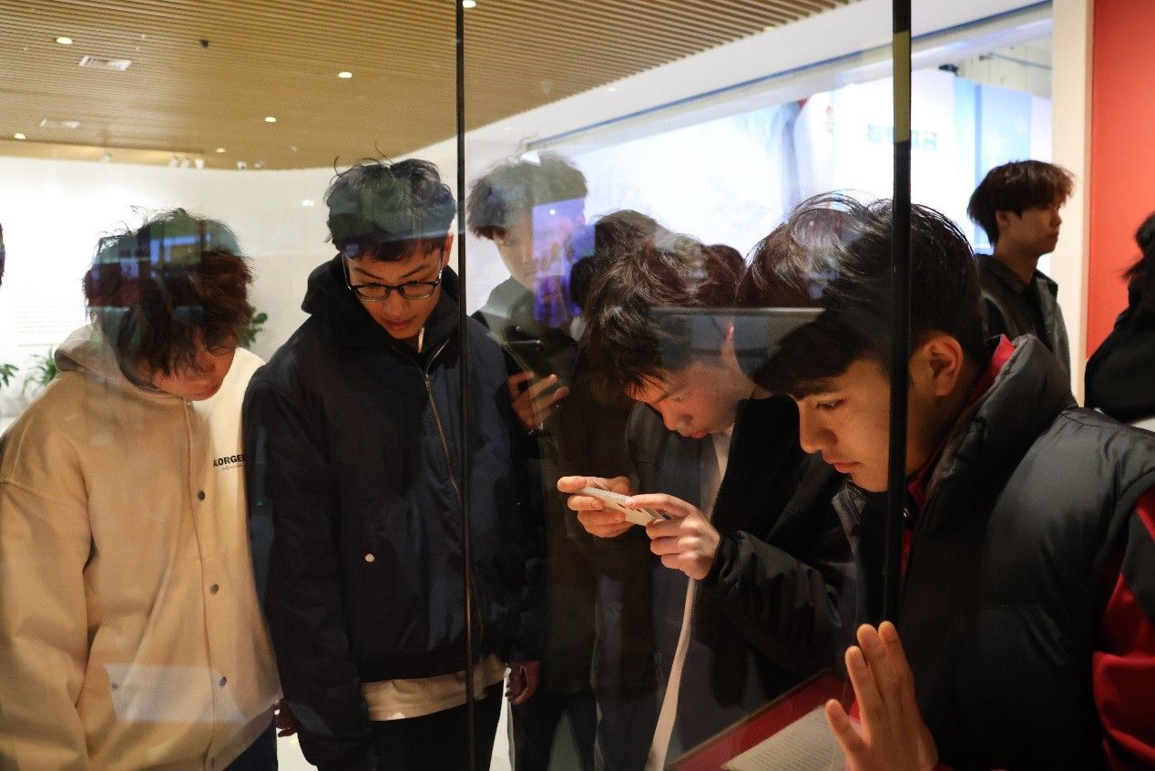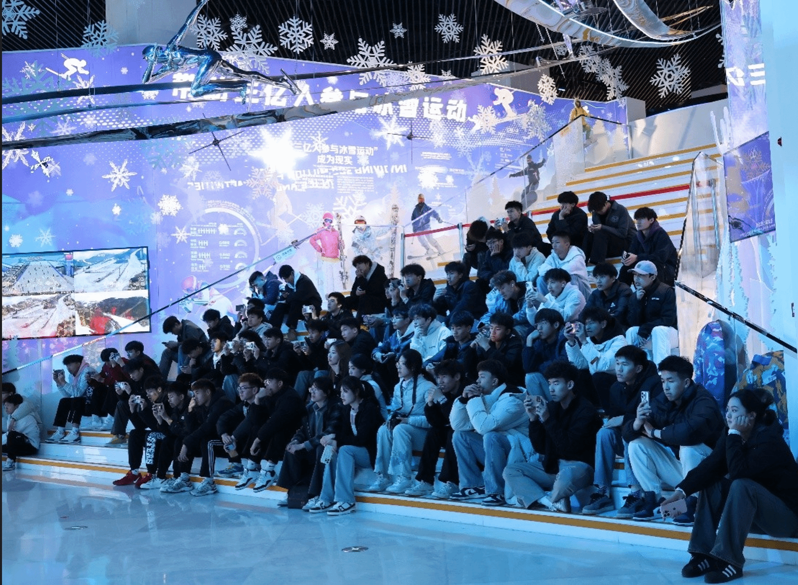 北京奥运博物馆是以北京奥运会为主题的永久性专题博物馆,承担奥运藏品研究、收藏、保护、展示和教育等职能,是奥运文化遗产的重要传承机构。在讲解员的带领下,同学们参观了基本陈列展厅和民族传统体育活动展。基本陈列展厅以“圆梦双奥 共创未来”为主题,馆内通过实物、图文、场景复原、动态影像等多元形式,生动展现了奥运会历史、北京两次申奥历程以及2008年夏奥会、2022年冬奥会的辉煌。借助数字展厅,同学们仿若穿越时空,重睹双奥风采。特别是虚实结合的展示设计,如播放视频后屏幕打开露出实物模型,令人印象深刻。