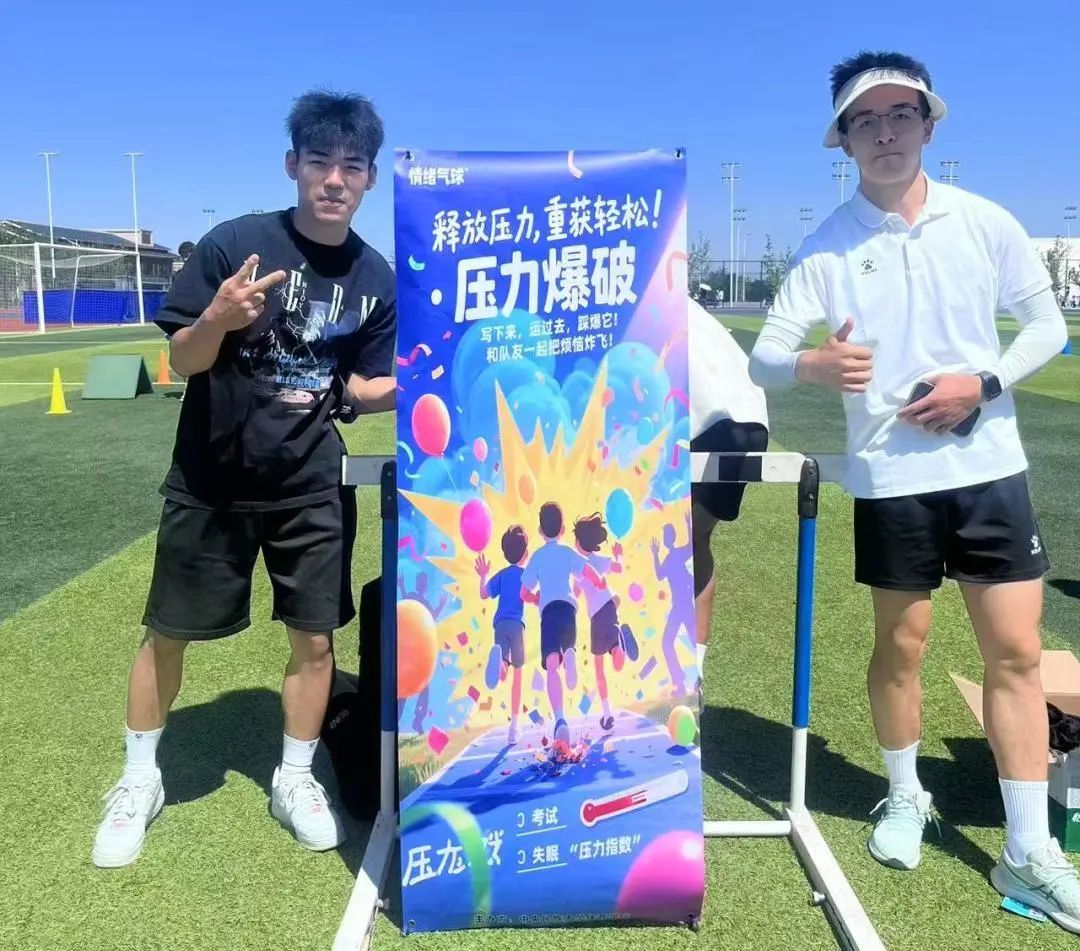 “极限解码·团队接力”环节将活动推向高潮。跳绳、俯卧撑的体能消耗后,队员们需合力拼合“挫折是成长的阶梯”心理格言拼图,某宿舍因分工混乱险些落后,队长及时调整策略:“体力好的先完成运动,逻辑强的负责拼图!”最终反超夺冠。而“情绪气球·压力爆破”则成为全场最解压的时刻——“论文开题好难”、“体测怕挂科”的焦虑被写在气球上,队员们背夹气球跑向终点,踩爆气球时喊出“找导师沟通”、“每天锻炼半小时”的应对方案,欢呼声与爆破声交织成青春的释放宣言。
