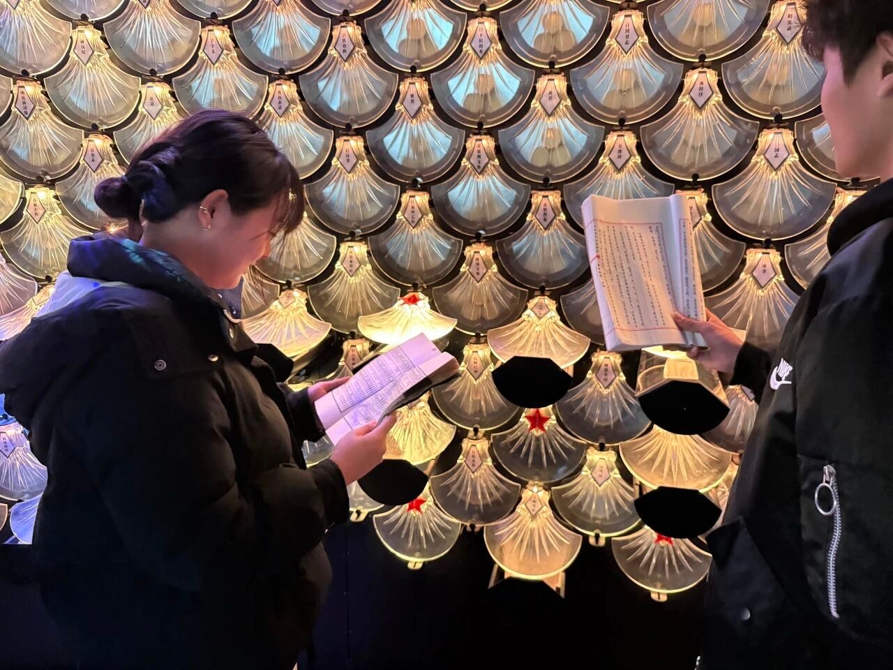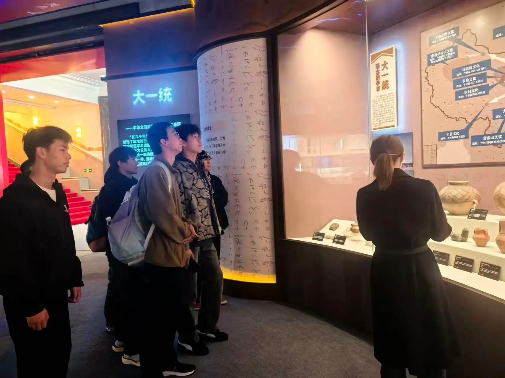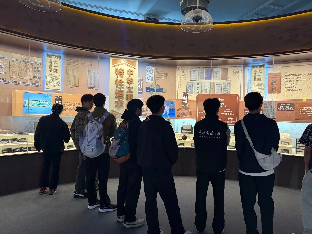 在民族文化宫,同学们在讲解员的带领下,依次参观了“大一统”“大融合”“大团结”三大展厅,展览以丰富的史料与生动的互动形式,展示了中华文明绵延不断的历史脉络,启发青年从文化自信与民族团结中汲取前行力量。现场氛围热烈而有序,互动体验让大家在亲身参与中体会到多民族文化交融共生的魅力。