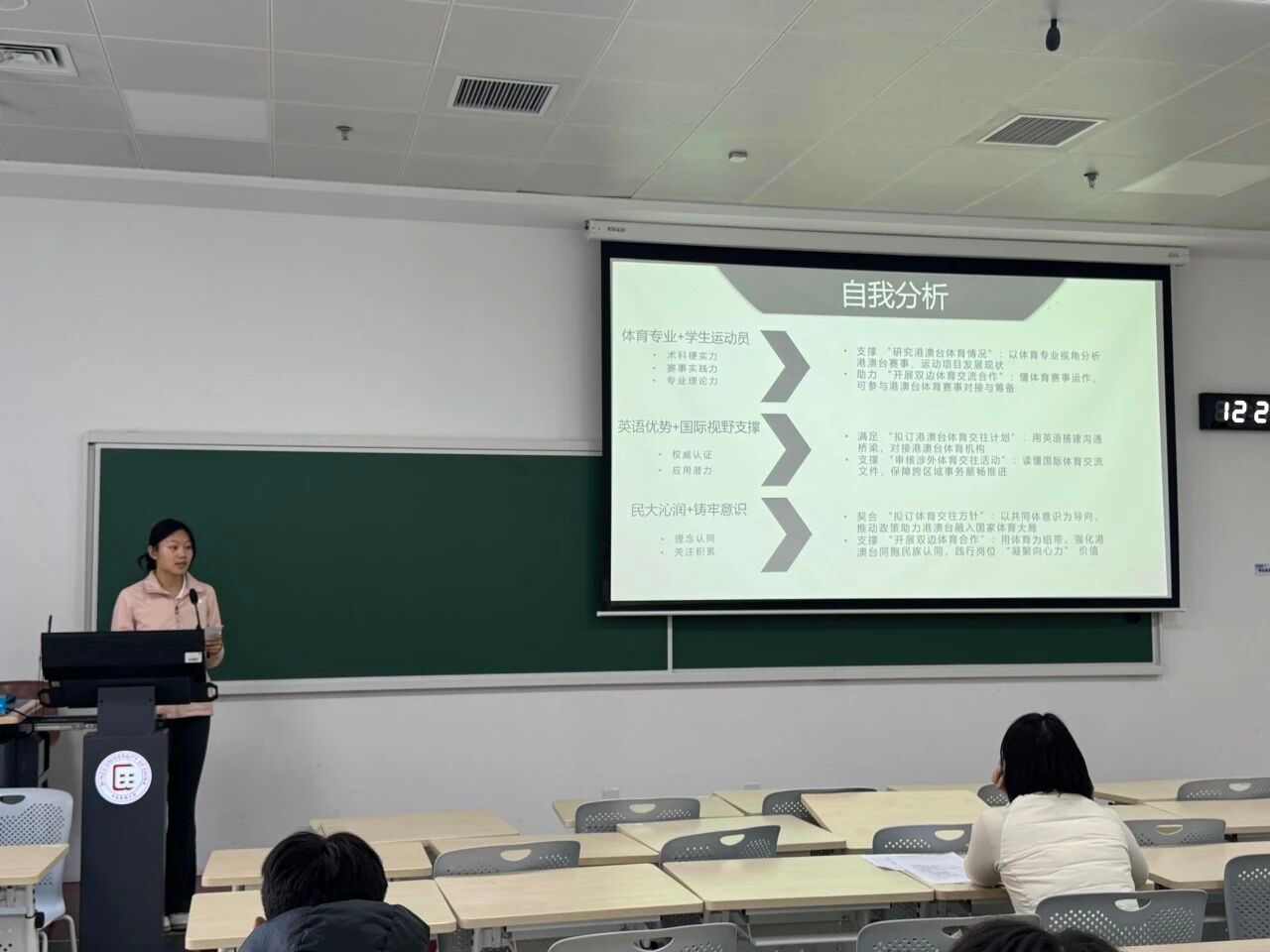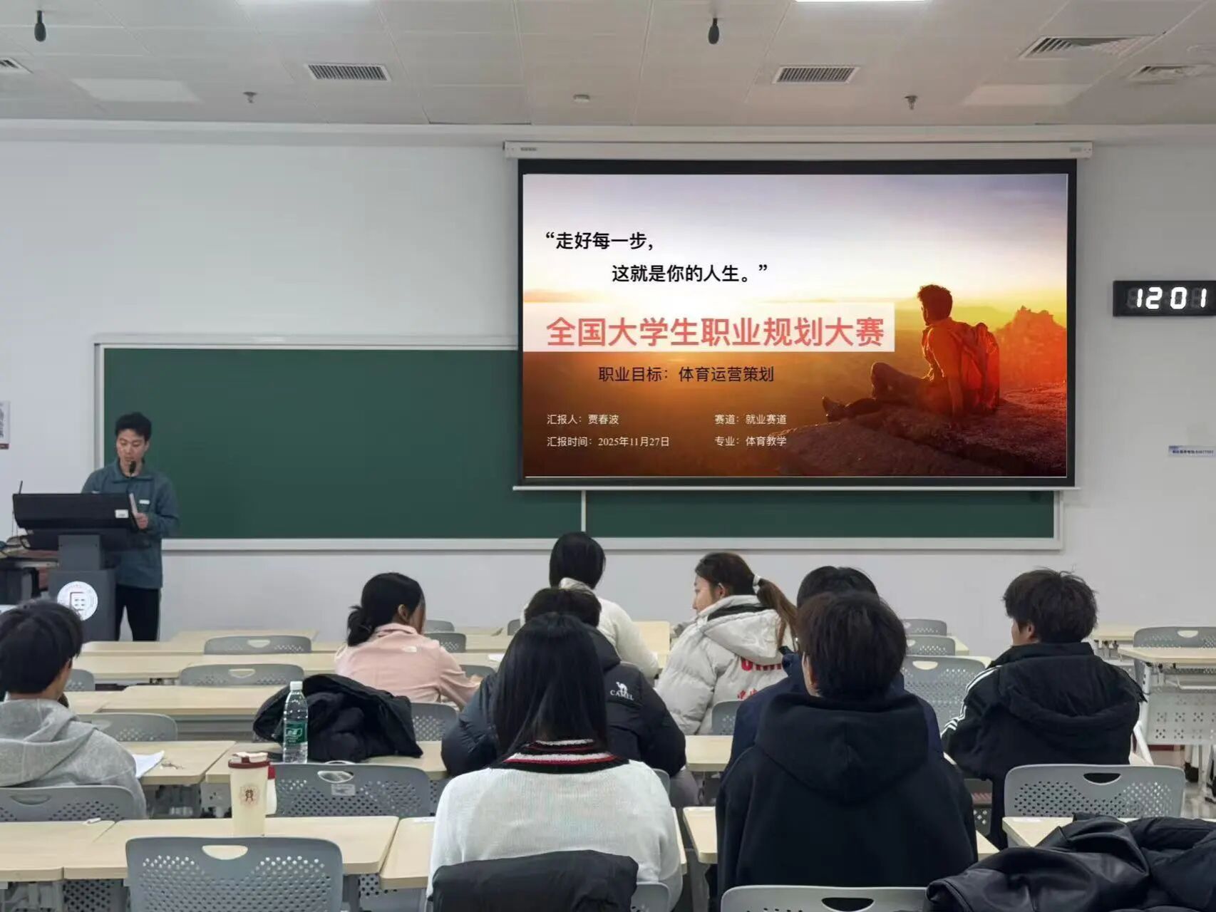 本次大赛分为成长组(聚焦在校学业提升与职业素养积累)和就业组(聚焦毕业后直接就业路径规划)两个赛道,各位参赛选手结合专业背景与个人兴趣,借助PPT进行系统阐述,围绕职业认知、目标设定及实施路径等方面展开论述,充分展现了体院学子扎实的专业素养、清晰的逻辑思维与前瞻性的职业视野。大赛评委从职业规划的可行性、行业适配性、个人优势挖掘等角度给予专业指导,并提出中肯建议,帮助选手进一步完善职业规划方案。