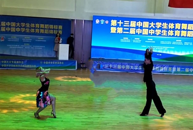 特别值得一提的是,孙佳琼同学在女子单人摩登四项华尔兹、维也纳华尔兹、探戈、快步全能项目上荣获亚军,她与罗鑫搭档的交谊舞项目获得第八名的好成绩。罗鑫同学虽在比赛中肌肉拉伤但依旧维持最好的赛场竞技状态,展现了运动员坚持不放弃的体育精神。“其实我们更应该感谢宗雪飞老师比赛中无微不至的照顾以及赛前的指导和鼓励。”两人如是说。