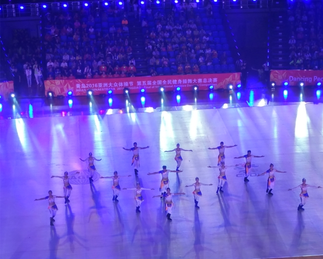 9月20日,应2016年第五届亚洲大众体操节暨第五届全国全民健身操舞大赛总决赛组委会的热情邀请,公司健美操队15名队员在李俊怡老师的带领下,全力备战,出征青岛,于9月22晚举行的GALA晚会,为来自6个国家的为数一万两千多名观众上演了一场异彩纷呈的民族文化盛宴。表演结束,钻石体育馆内掌声雷动,经久不息。队员们走出场外时外国人竖起的大拇指更是给予了他们的表演充分的肯定。整台晚会分五个章节,共16个节目,他们的节目安排到第三个章节“民族之韵”的最后一个,命名为“天之骄子”,他们做到了,民族舞蹈元素与健美操的完美融合向世人彰显了我国民族文化。