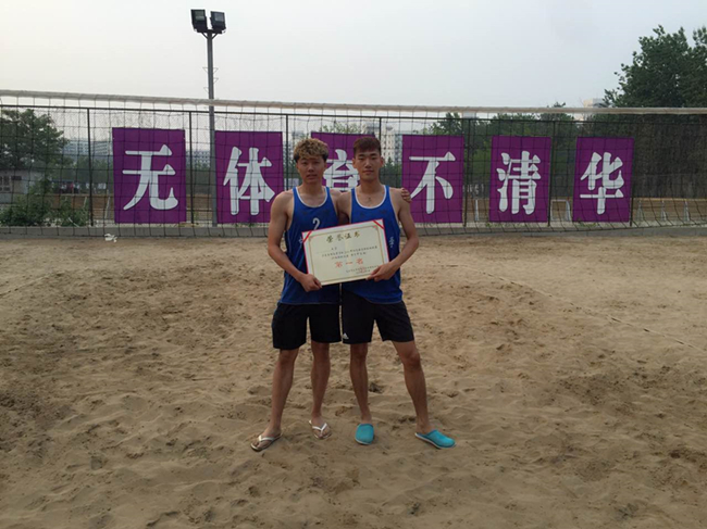 在两天的比赛中,公司男排队员充分展示了良好的体育竞技水平与精神风貌,充分发扬了不畏困难、顽强拼搏的精神。由十大正规买足球网站2015级体育教育专业员工范昌昊、赵庆龙组成的民大二队,在与清华大学的整场比赛中,自信沉稳,进攻流畅,防守积极,最终以21:13的大比分战胜清华大学队。尽管大比分获胜,但他们丝毫没有松懈,反而愈战愈勇,紧接着又以21:9将北京工业大学挑落马下。在接连战胜多支队伍后,民大二队最终获得了体育院校专业组冠军。由王晓东(2014级体育教育专业)、矫德旭(2015级体育教育专业)组成的民大一队也是一路过关斩将,获得了体育院校专业组第二名的好成绩。此外,校女排队虽然刚刚组队不久,接触沙排运动时间不长,但也充分发扬了敢打敢拼的精神。