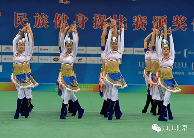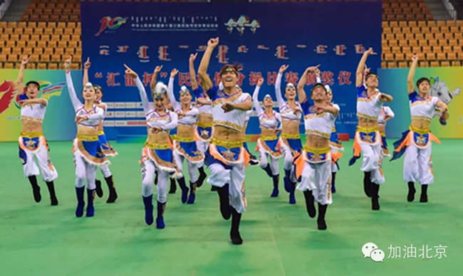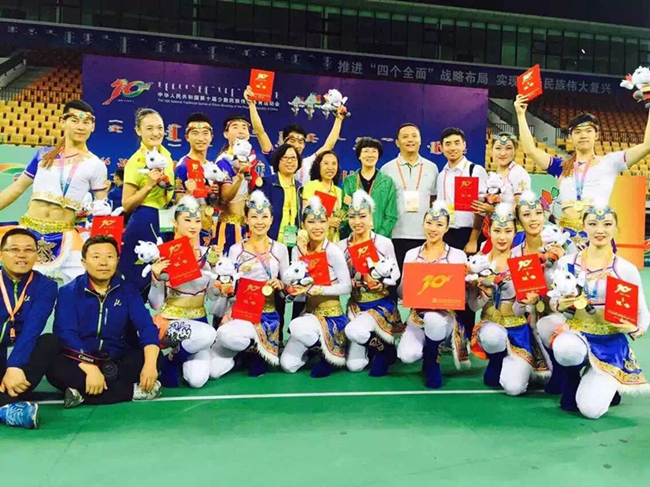 2015年8月17日,在内蒙古鄂尔多斯举办的第十届全国少数民族传统体育运动会上,他们不负众望,实至名归地站在了“民族健身操项目”冠军颁奖台,为北京市代表团夺得了一枚宝贵的金牌,顷刻间全场掌声雷动,喜悦的泪水模糊了眼眶,这是他们对胜利的最好诠释。