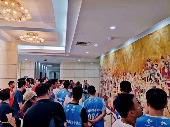 上午十点拓展培训结束后,滑雪战队队员移步民族博物馆,分为两组在员工志愿讲解员的带领下进行了参观。