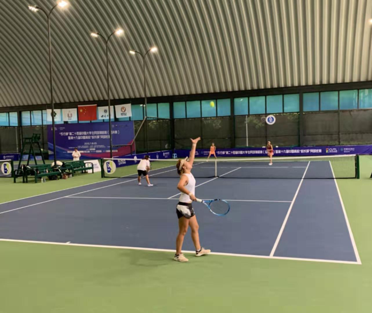 女队这边官昕和张爱湫慧作为一号种子,首轮轮空。16进8对阵重庆大学,6-3轻松取胜。8进4碰到实力不弱的上海交通大学,6-4再下一城。半决赛对阵强敌浙江大学,姑娘们没有一丝懈怠,顽强拼搏,抢七艰难取胜进入决赛,最后获得亚军的好成绩。