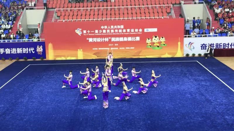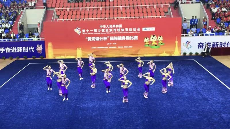健美操队与29支代表队进行了民族健身操第一轮自选套路的角逐,队员们通过日复一日的努力训练早已经把动作熟记于心,不出意料的以9.250的成绩拿到第一名。