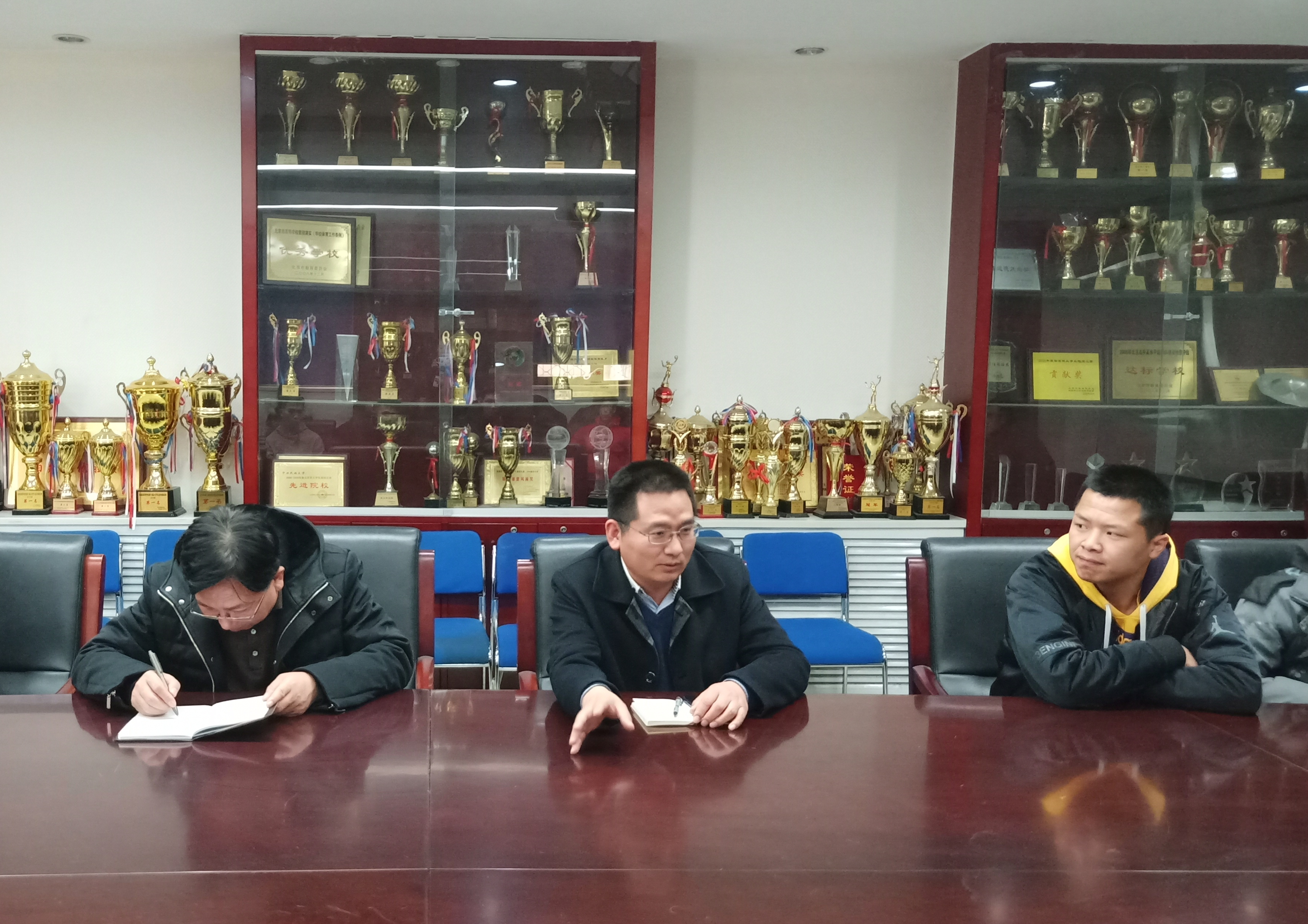 体育公司党总支书记姚显志首先肯定了公司近期取得的优异成绩,排球、篮球、网球在北京市比赛中获奖,公司被授予第十一届全国民运会北京市代表团“突出贡献奖”。随后,姚书记就宿舍卫生、用电安全、食品卫生安全、饮酒、夜不归校等问题进行重点强调,要求班委干部要善于发现问题,主动沟通协调,及时汇报相关情况,切实履行员工干部职责。临近期末,同学们要再接再厉,在期末考试中取得优异成绩。