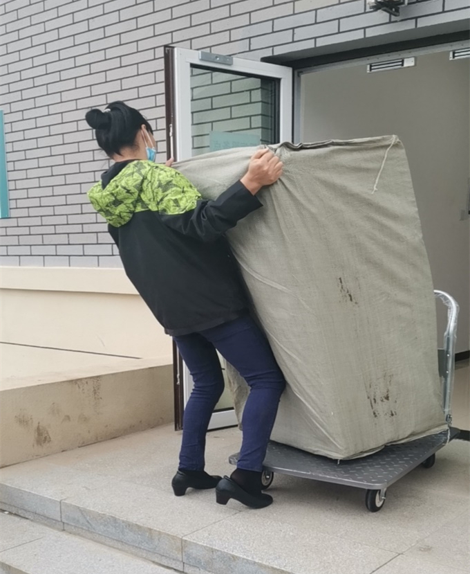 9月17日开学典礼之际,宗雪飞副经理带苟师傅和其他两名员工志愿者来丰台校区卸货
