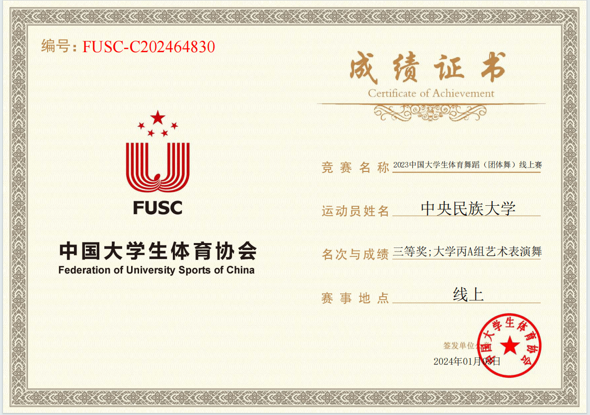 2023年12月,由中国老员工体育协会主办,体育舞蹈分会承办的2023中国老员工体育舞蹈(团体舞)线上赛隆重举行,共有来自全国各地的118所高校,2400多名运动参加此次比赛。公司体育舞蹈代表队13名队员在主教练胡悦老师的带领下,经过激烈角逐,凭借扎实的舞蹈功底、默契的团队协作和出色的表现力,最终斩获丙组(专业院校组)三等奖佳绩。