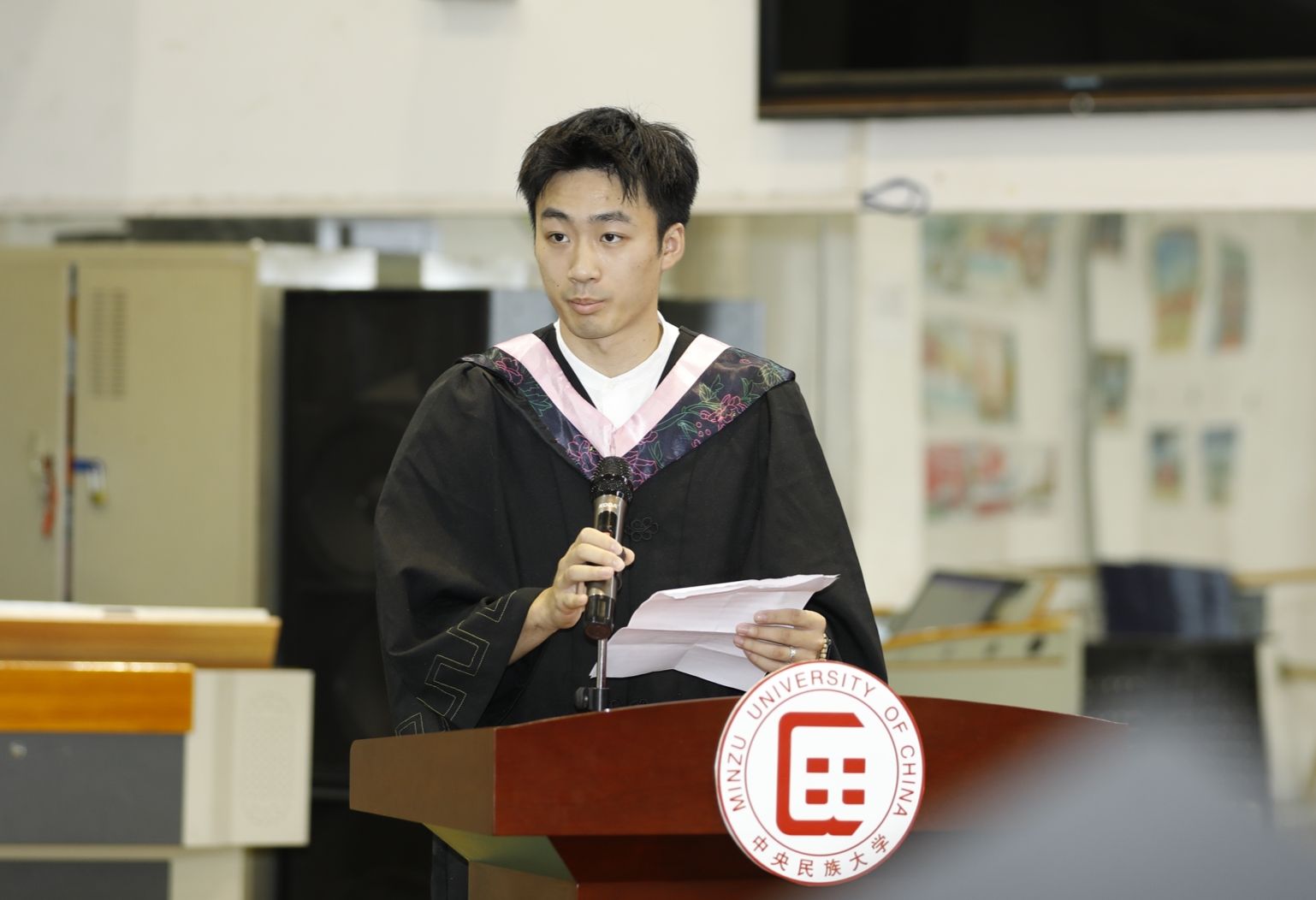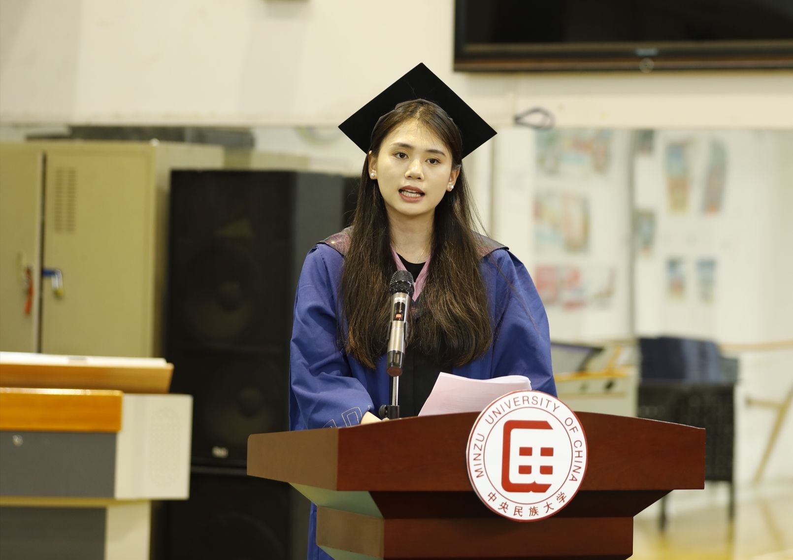 硕士研究生毕业生代表王雨薇回顾了在民大的学习经历,表达了对母校、老师、同窗挚友的感谢之情,祝福所有毕业生前程似锦,能够在未来的新征程上,书写出新的精彩人生。