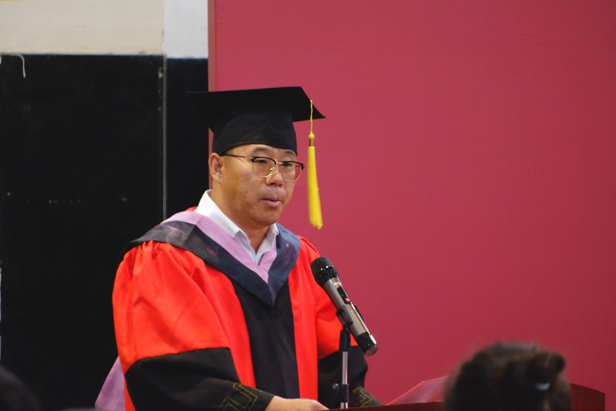本科生毕业生代表罗文瑞在发言中向全体教师表达了崇高的敬意和衷心的感谢。他以“告别的烦恼”为主题,流露出对母校依依不舍的眷恋,祝愿母校更加美好,桃李满天名似海,硕果累累似白杨。