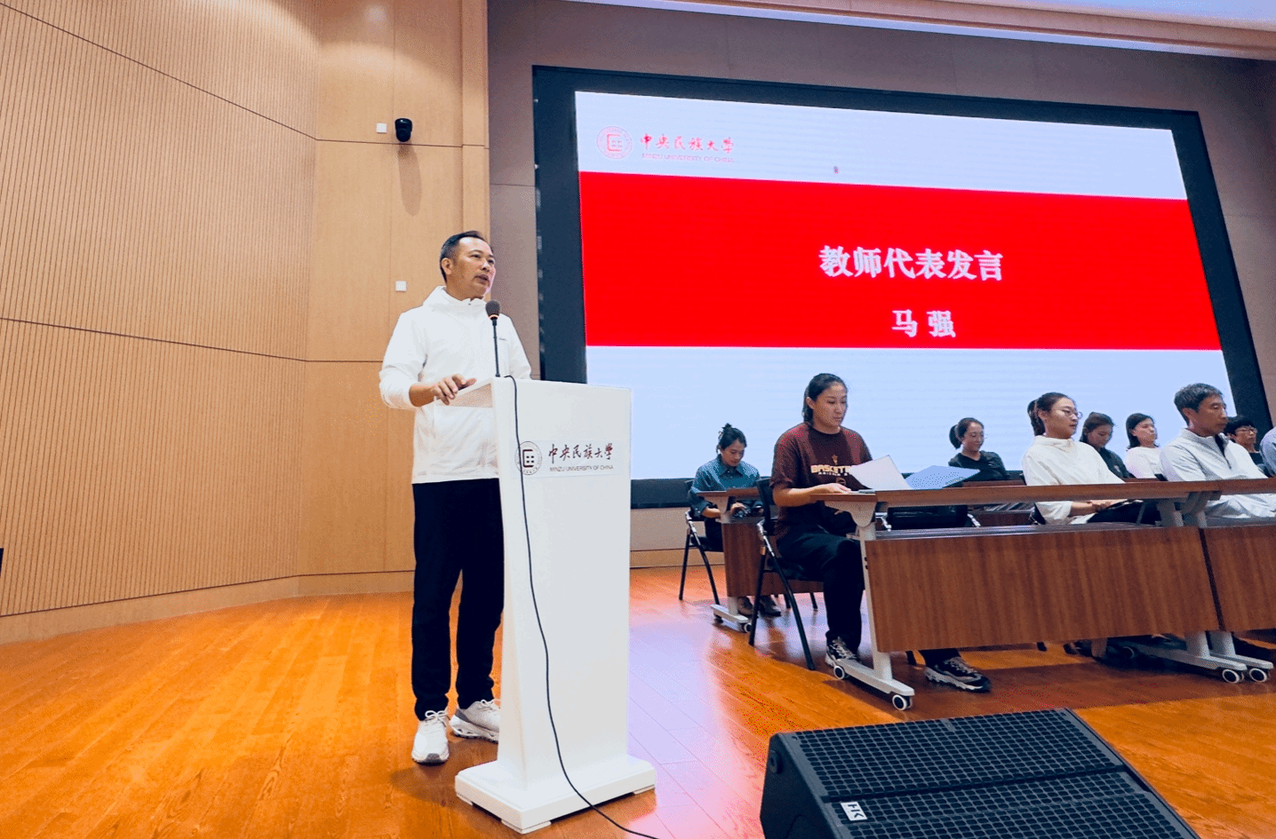 教师代表马强分享了自己的学习生涯和教学经验,鼓励新生积极参与专业学习和体育竞赛,做到多元发展,努力成长为堪当民族复兴重任的时代新人。