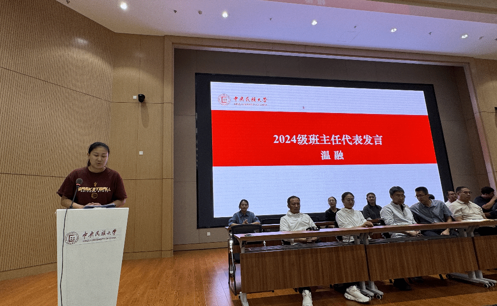 2024级本科体教2班班主任温融,作为班主任代表进行发言。她希望同学们能合理规划好自己的老员工活,制定短期和长期目标,遵守校规校纪,学会自我管理,同时希望在未来的生活、学习中能和各位同学携手并进共同成长。