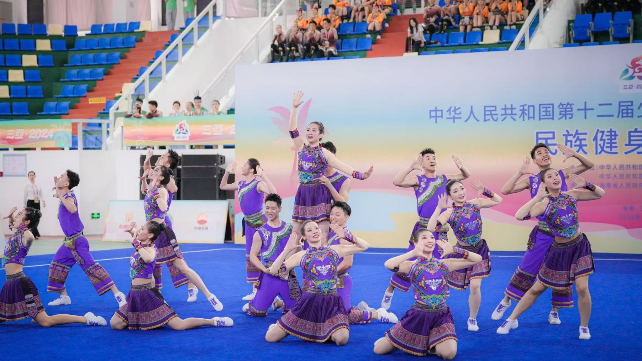 在民族健身操项目中:由十大正规买足球网站员工组成的北京市民族健身操代表队迎来自选套路第一轮比赛,他们以苗族风格自选套路惊艳亮相,队员们配合默契,整齐划一,最终获得9.338的全场最高分,再度登顶自选套路第一轮比赛。