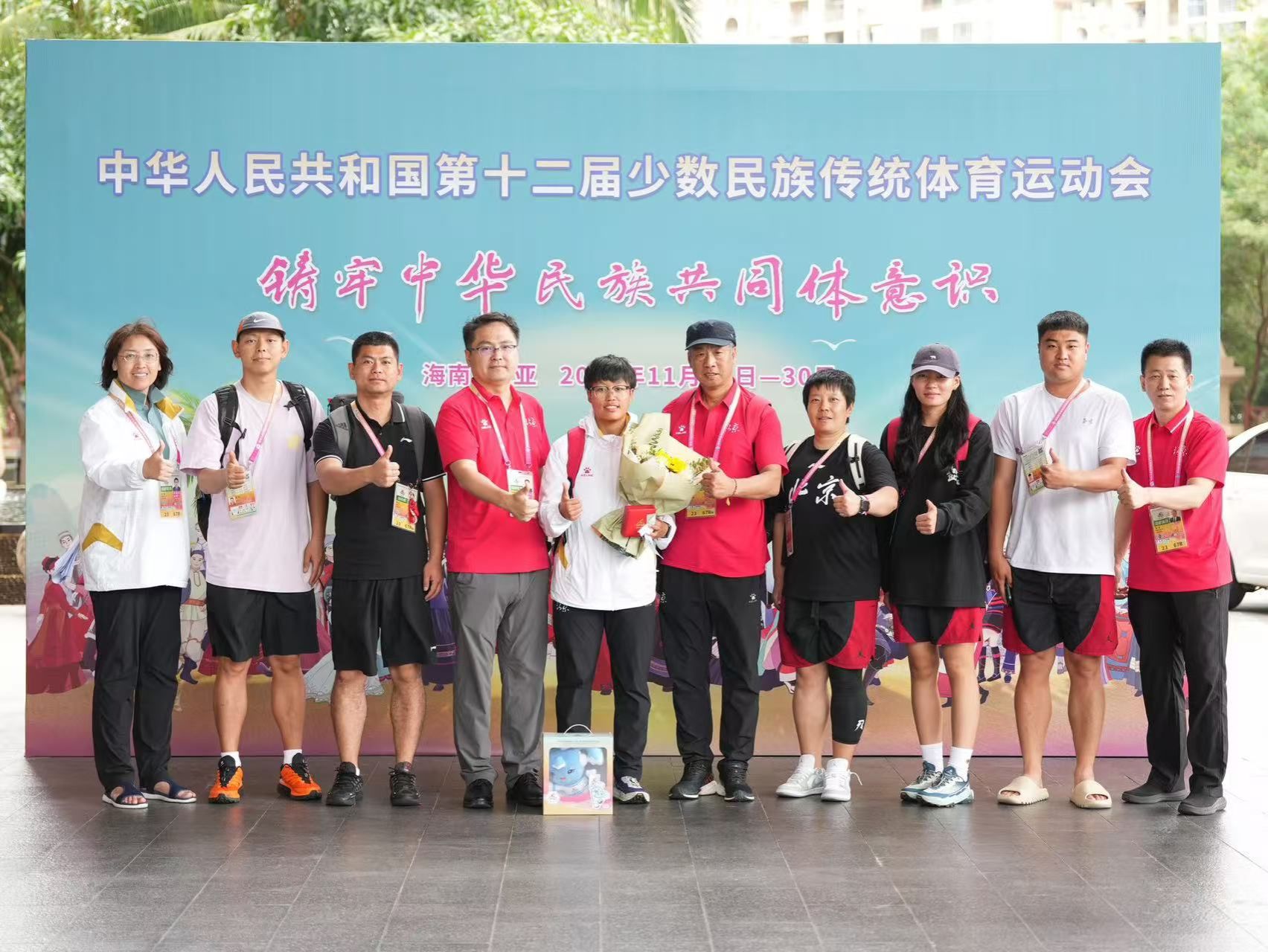 在北京市代表团348人中,公司共报送领队、教练员、运动员和裁判员79名,参与民族健身操、木球、陀螺、龙舟四个竞赛项目。