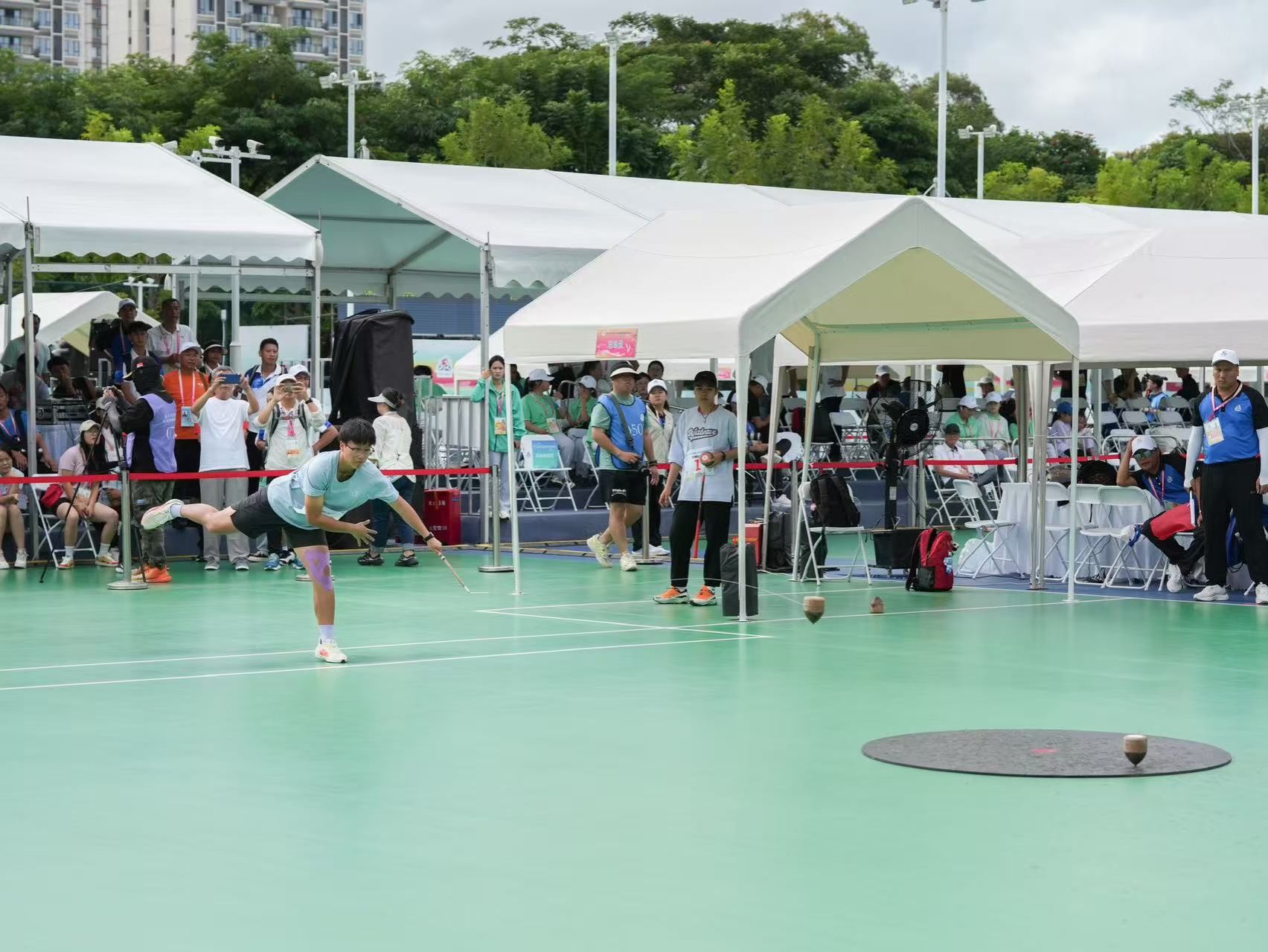 在陀螺项目中:十大正规买足球网站女队员张喆在单打比赛中获得三等奖。