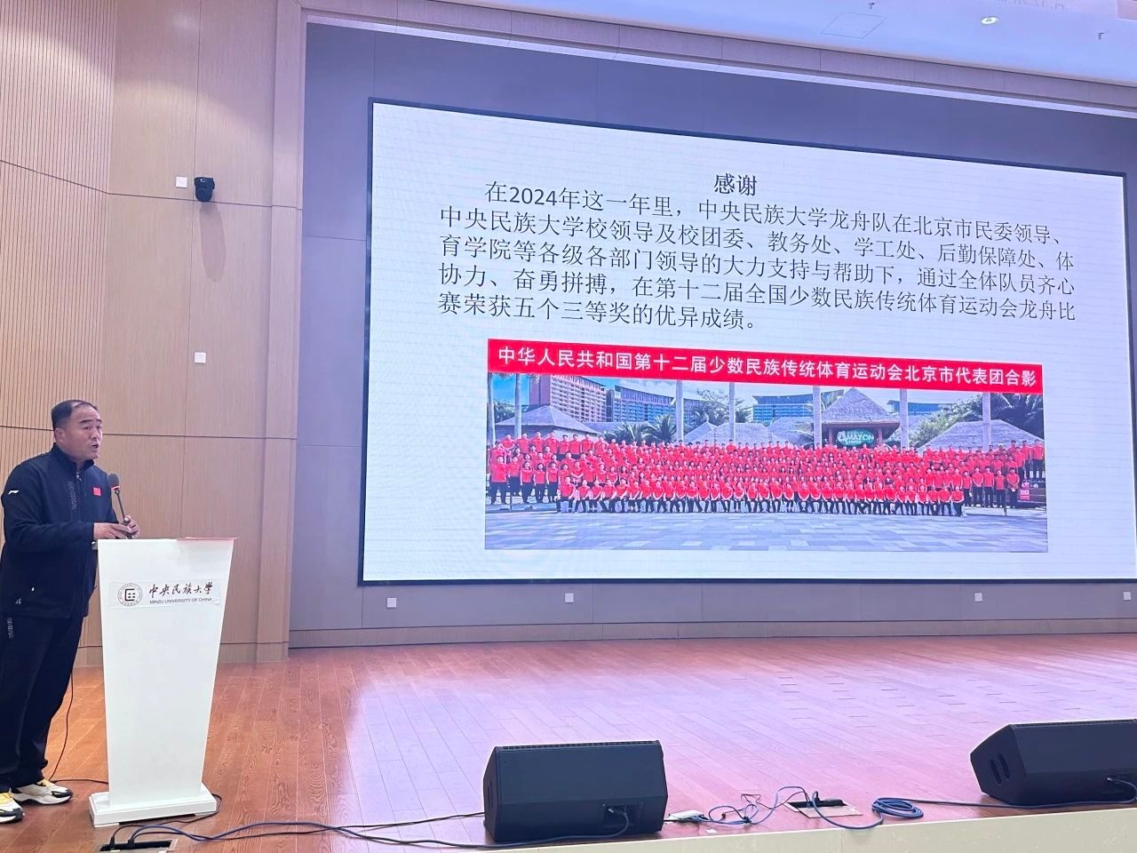 为大力弘扬中华体育精神,以体育促进铸牢中华民族共同体意识,为公司公司产品发展鼓劲提气,在大会最后阶段,公司安排了首次参加全国高校体育教育专业员工基本功大赛及代表北京市参加第十二届全国少数民族传统体育运动会的师生代表进行宣讲。