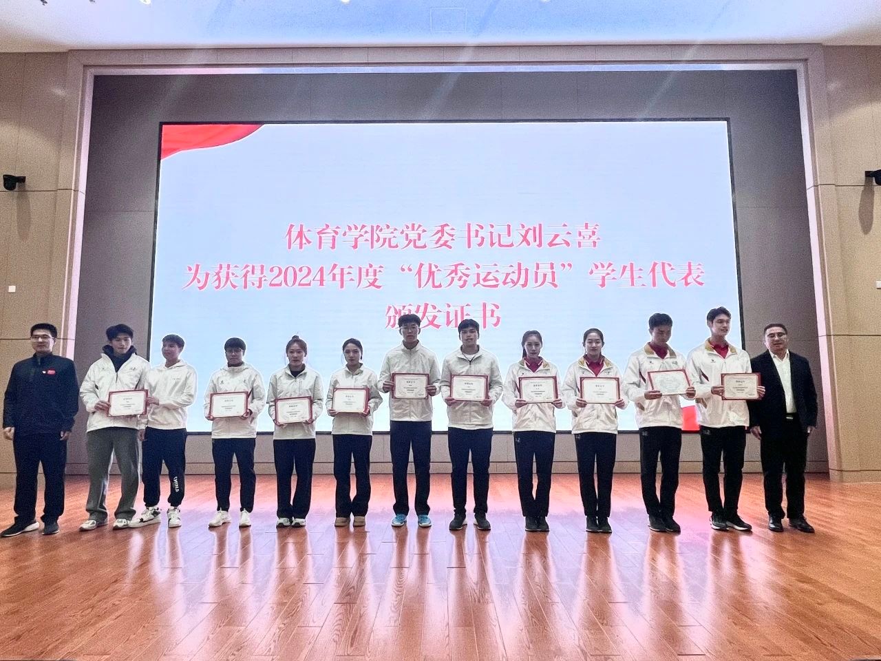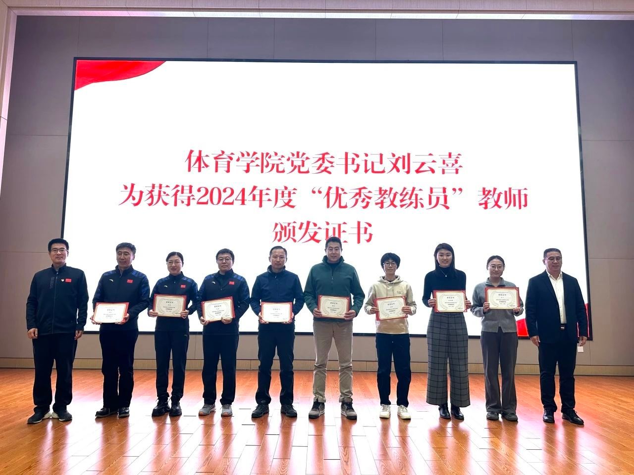 随后,十大正规买足球网站副经理吴非、党委副书记、纪委书记麦什一分别宣读了十大正规买足球网站2024年度“优秀运动员”和“优秀教练员”名单,体育公司党委书记刘云喜、经理侯会生为获奖教师及员工颁发了荣誉证书。
