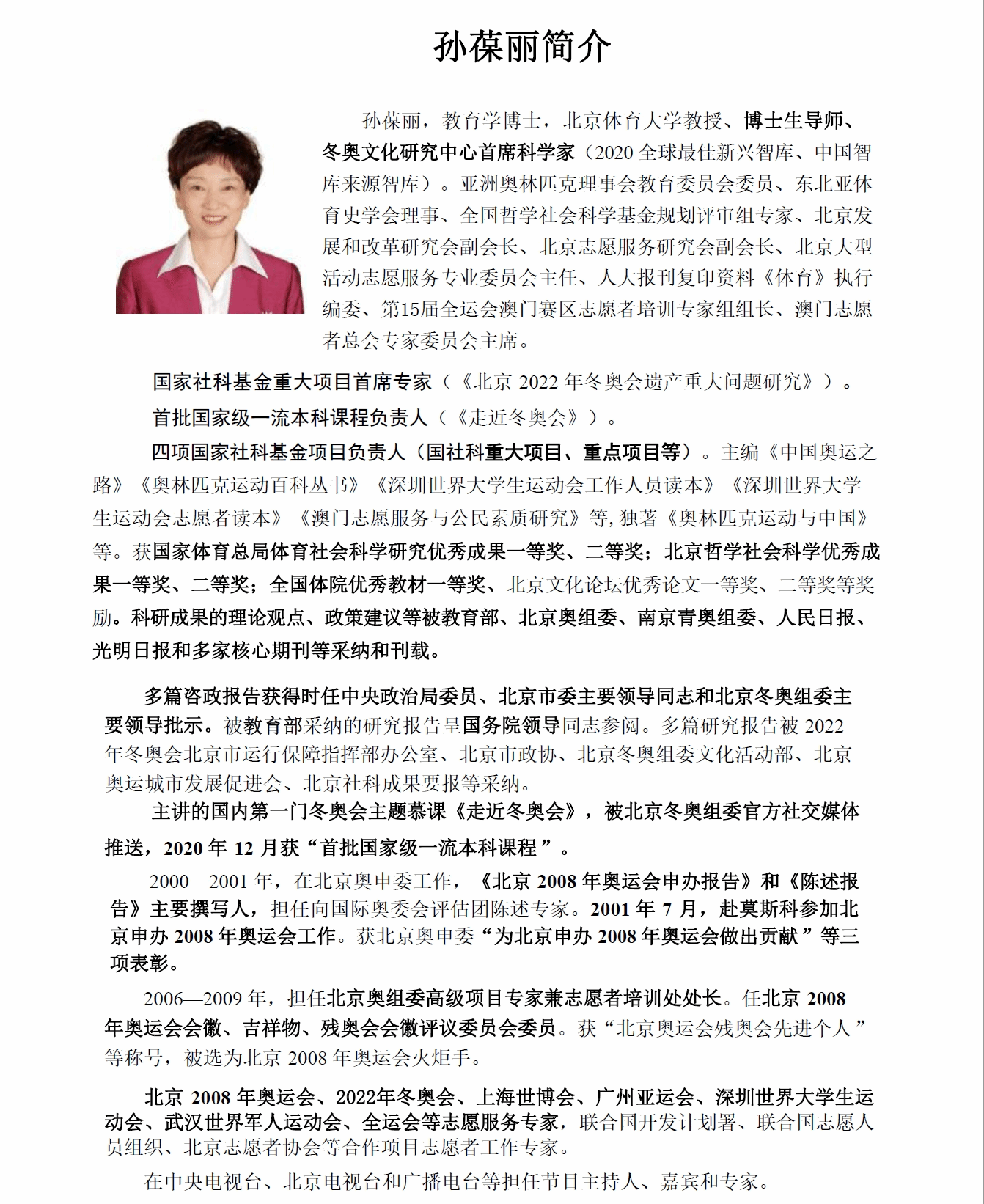 讲座题目:走进冬奥会讲 座 人:孙葆丽讲座时间:12月5日(周五),...