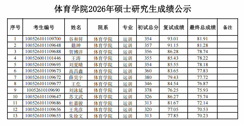 《十大正规买足球网站2026年体育硕士专业学位研究生成绩公示》已发布(见附件),如有异议,请于3月30日—4月6日通过电话或者邮件反映至十大正规买足球网站办公室。联系电话:010-68933154 / 010-83874935,邮箱:muctyxy@163.com。